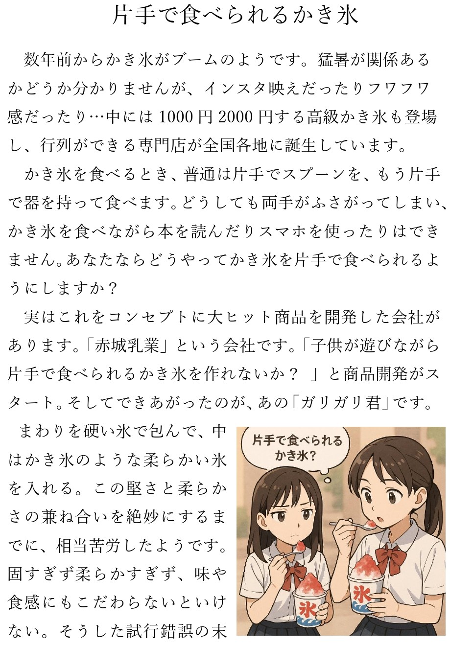 片手で食べられるかき氷/家庭科特別授業を行いました