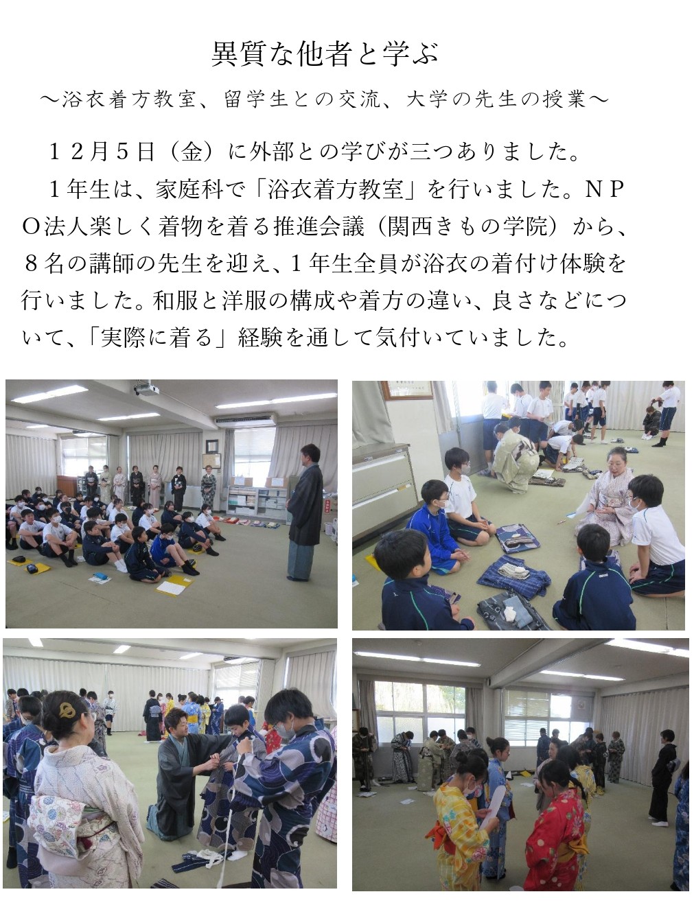 異質な他者と学ぶ~浴衣着方教室、留学生との交流、大学の先生の授業~