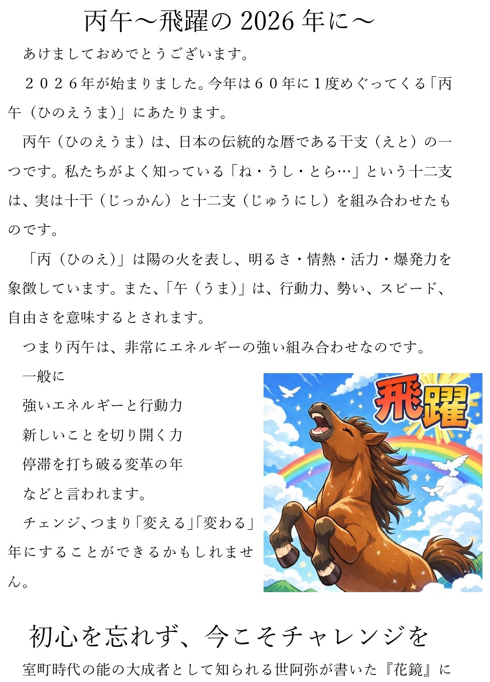 丙午~飛躍の2026年に/初心を忘れず、今こそチャレンジを