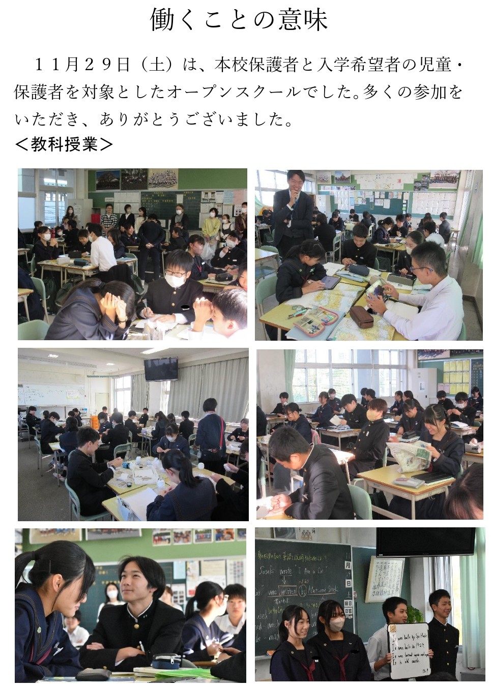 オープンスクール(11月29日)に多数のご参加ありがとうございました。
